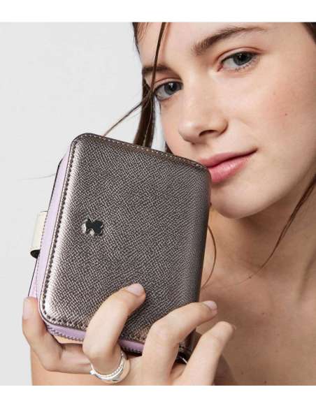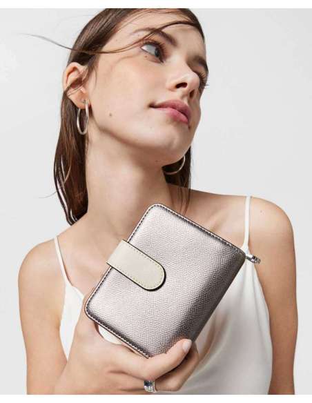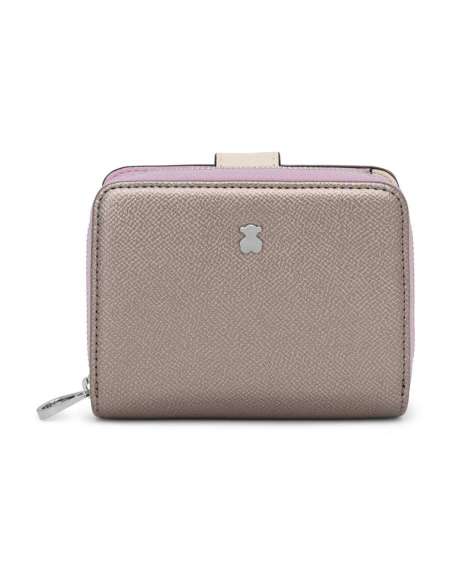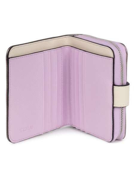 Cartera TOUS de la colección New Dubai de poliuretano con efecto saffiano. Cierre con botón a presión y cremallera. Dos compartimentos principales: uno con cremallera y otro para tarjetas.