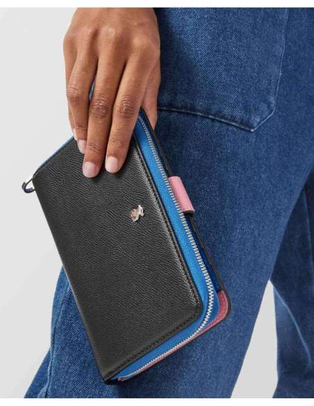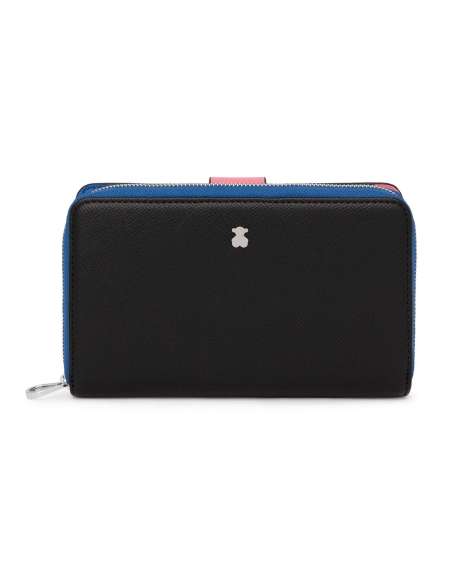 Billetera mediana TOUS de la colección New Dubai de poliuretano con efecto saffiano. Cierre con botón a presión y cremallera. Dos compartimentos principales: uno con cremallera y otro para tarjetas.