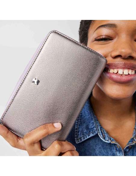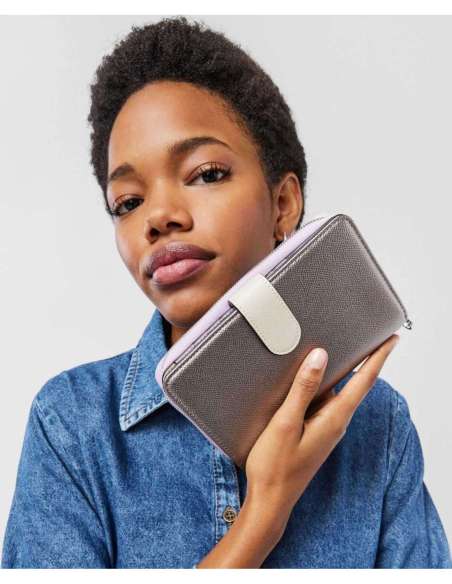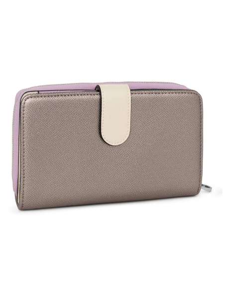 Billetera mediana TOUS de la colección New Dubai de poliuretano con efecto saffiano. Cierre con botón a presión y cremallera. Dos compartimentos principales: uno con cremallera y otro para tarjetas.