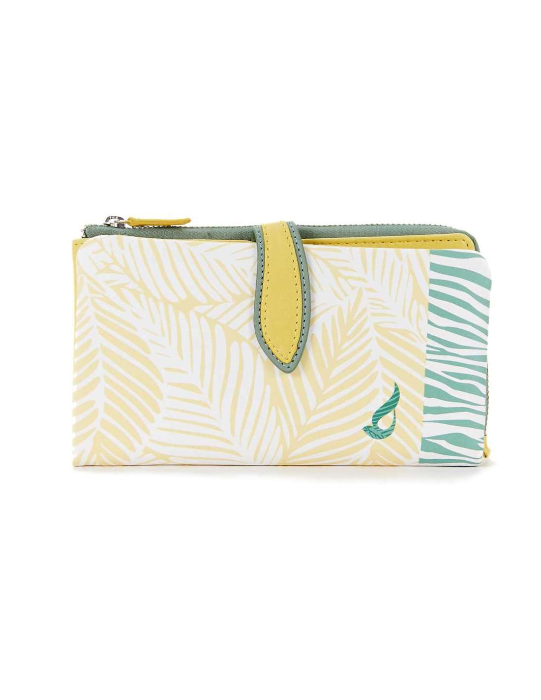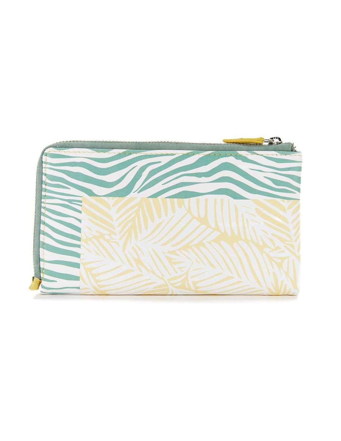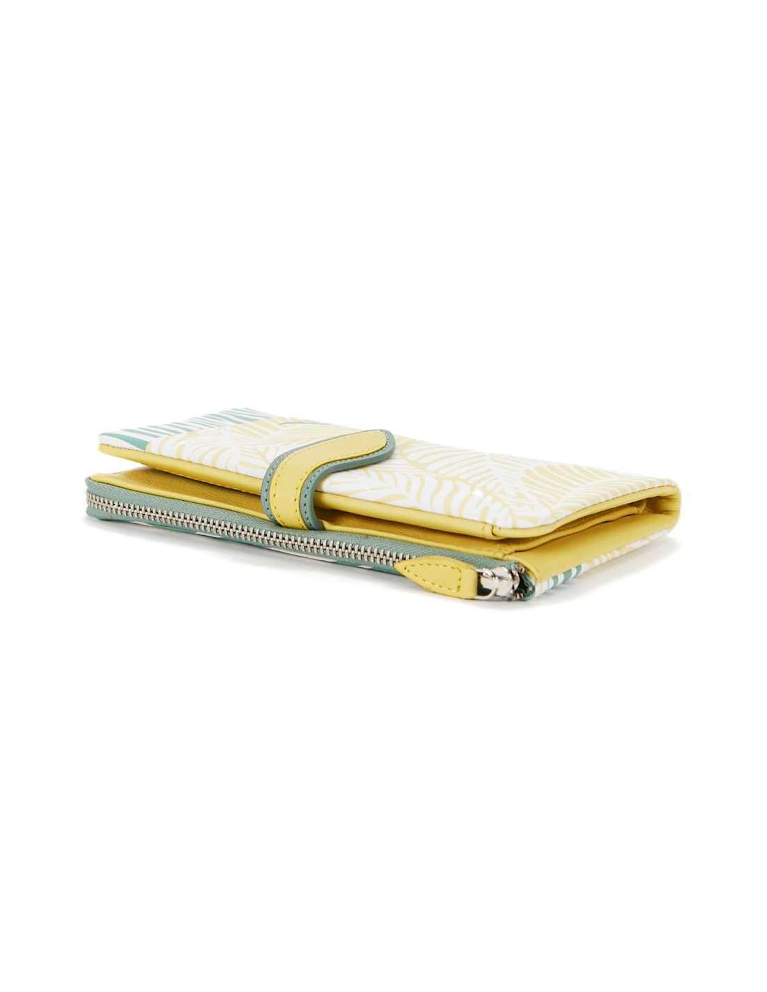 Cartera grande de mujer en piel con print tropical