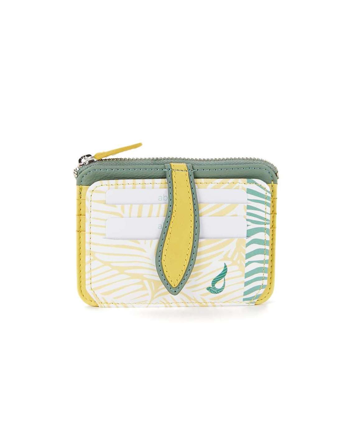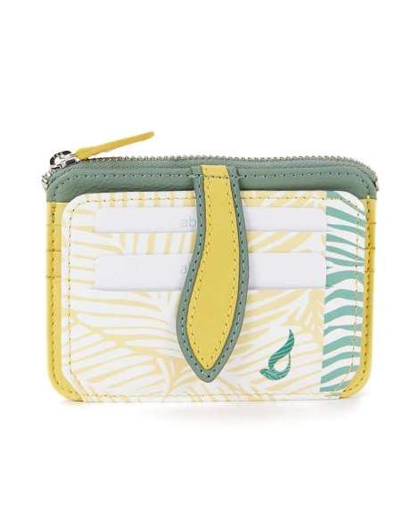 Tarjetero-monedero de mujer en piel con print tropical