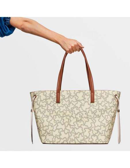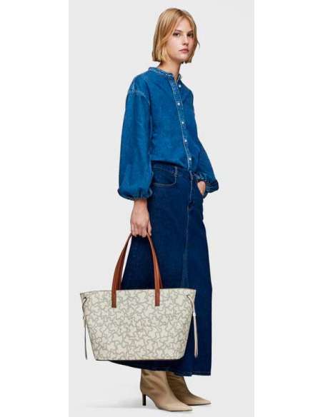 Bolso capazo grande de lona Kaos Icon y detalles en piel sintética. Cierre de cremallera. Asa de hombro fija.