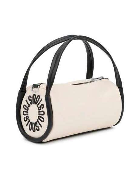 Bolso Duffle pequeño TOUS Miranda Soft de lona con detalles en poliuretano. Cierre de cremallera. Asas fijas de hombro y asa bandolera ajustable y extraíble.