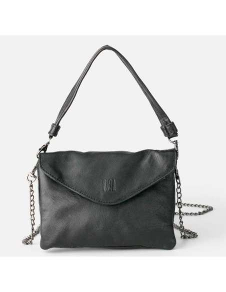 Bolso bandolera de piel ovina. Asa de hombro y bandolera, ambas extraíbles. Cierre con solapa y cremallera, dos compartimientos internos, bolsillos internos y externos, y forro de algodón.