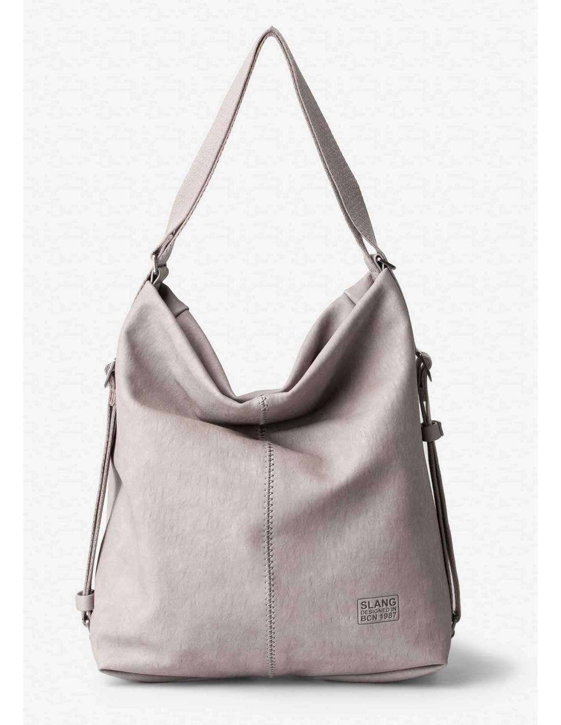 Bolso Hobo que se puede convertir en mochila con material efecto nylon vintage. Bolsillo trasero con cremallera y bolsillo delantero con cierre magnético. bandoleras regulables. Forro interior de algodón reciclado con múltiples bolsillos. Cierre de cremallera metálica. Resistente al agua.