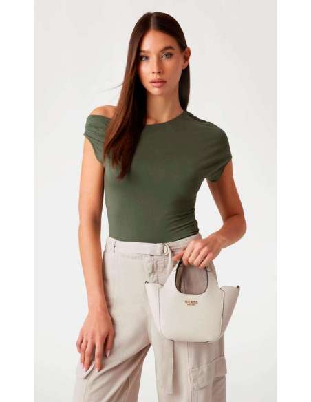 Exterior de piel sintética. Cierre con botón. Piezas metálicas color dorado pálido. Dos asas de aprox. 35 cm de longitud. Bandolera regulable y desmontable de aprox. 110/130 cm de longitud.