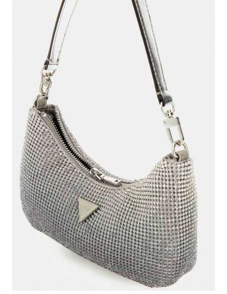 Exterior con strass. Cierre con cremallera. Piezas metálicas color plateado. Asa desmontable de aprox. 35 cm de longitud.