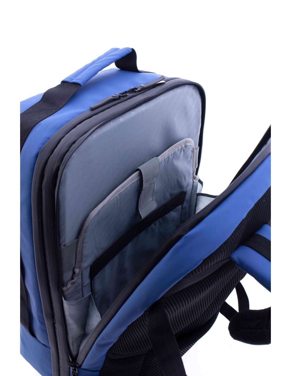 Mochila grande fabricada en material reversed polyester. Material repelente al agua. Medidas aptas como equipaje de mano. Apertura de la mochila tipo maleta. Extensible. Asa superior y lateral. Varios bolsillos exteriores. Compartimento para ropa. Bolsillos interiores. Mochila expandible. Interior forrado. Asas acolchadas. Parte trasera acolchada. Dpt. Para el portátil de 17'. Cinta posterior para poder acoplar al mecanismo de la maleta. Cintas laterales ajustables. Cinta ajustable para pecho y cintura.