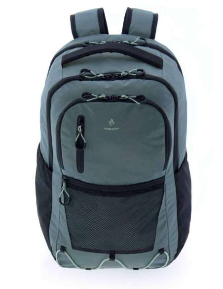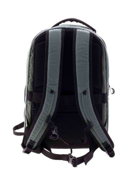 Mochila fabricada en material ligero Nylon Ripstop. Tres compartimentos centrales con cierrre de cremallera. Bolsillos interiores y compartimento para el portátil de 15 pulgadas y tablet. Bolsillos frontales, laterales y en la parte posterior. Asas acolchadas. Correa regulable para pecho. Cinta para acoplar a la maleta.