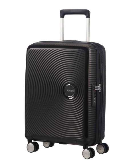 Maleta. Este equipaje de mano expansible con surcos de la colección Soundbox es uno de los diseños de maleta más impactantes que hemos hecho hasta la fecha. El divertido motivo circular con superficies mates y brillantes contrastadas hará volver las miradas en todos los sitios a los que viajes. Expansibilidad, cerradura TSA fija y cómoda organización interior son cualidades que ayudarán a convertir esta maleta en la elección más valorada. Se ajusta a las dimensiones de muchas líneas aéreas, incluidas Ryanair, easyJet y Norwegian. Material de fabricación: 100% Polypropylene. Rígida. Dimensiones: 55 x 40 x 20 cm. Dimensiones expandidas: 55 x 40 x 23 cm. Volumen: 35.5 L. Volumen expandido: 41 L. Peso: 2,6 kg. Candado fijo de combinación de 3 dígitos con función TSA. Cremalleras estándar. 4 ruedas. Ruedas Dobles. Tirador de doble tubo. Asa(s) superior(es). Compartimento superior. Separador interno en compartimento superior. Compartimento inferior con cintas. En compartimiento inferior. Garantía legal.