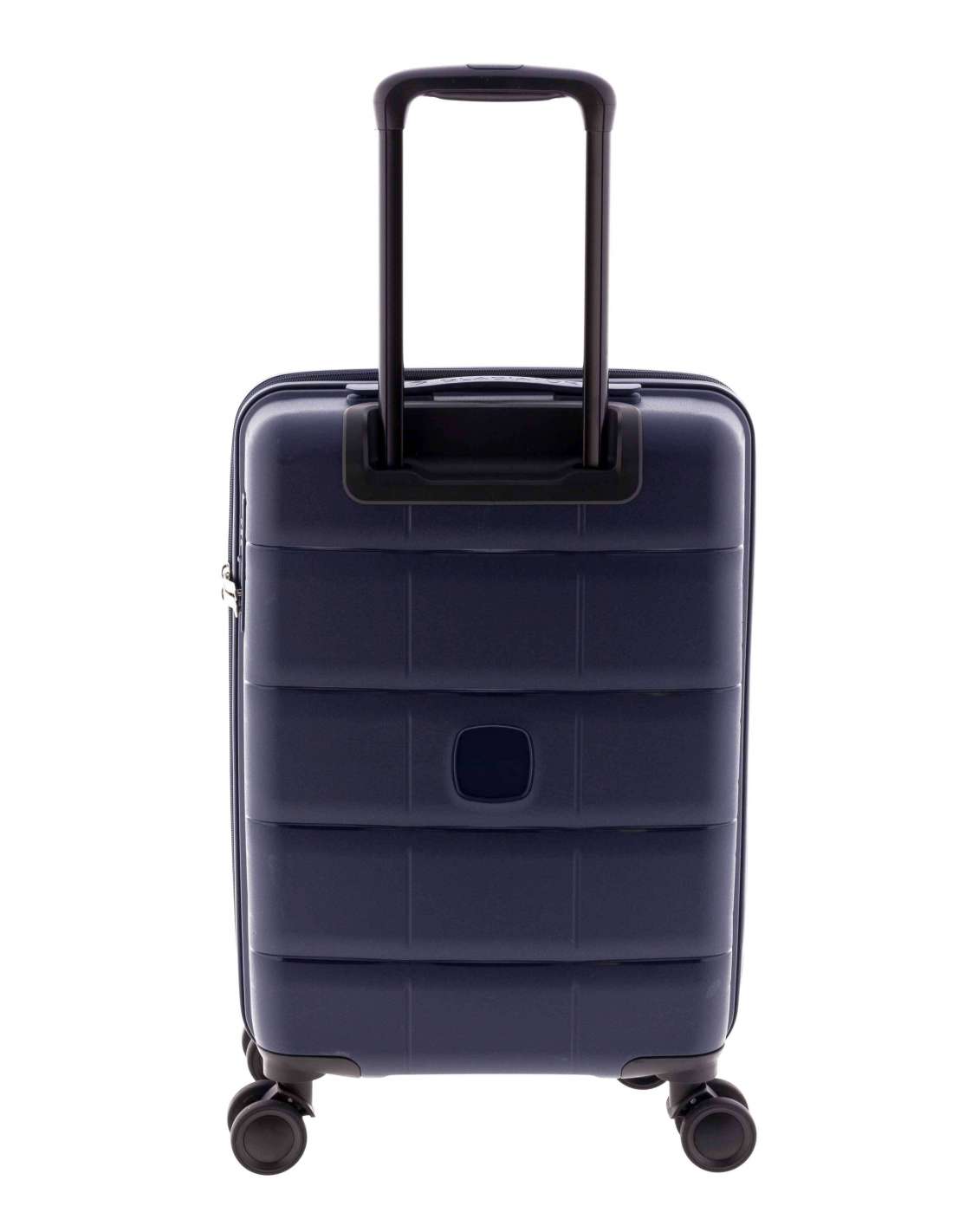 Maleta de cabina con medidas maximizadas. Cuatro ruedas dobles. Candado de combinación TSA incrustado en el lateral. Asa superior. Mecanismo con botón. Interior forrado con bolsillos. Cintas elásticas en ambos lados. Material súper resistente polipropileno.