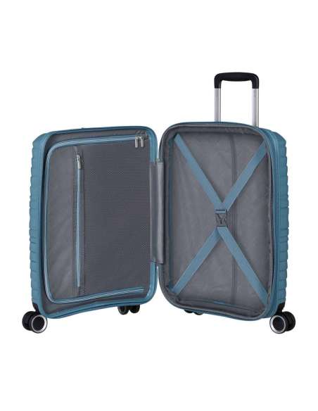 Maleta de cabina. Blanda. Material de fabricación: poliéster y recyclex. Dimensiones: 55 x 40 x 23 cm. Dimensiones expandida: 55 x 40 x 25 cm. Peso: 2,5 kg. Volumen: 39 litros. Volumen expandida: 46 litros. Cierre con cerradura TSA de 3 dígitos. Asa superior. Tirador de doble tubo. 4 ruedas dobles. 1 bolsillo exterior delantero. Expandible. Equipaje de mano. Compartimento central con cintas cruzadas. Garantía legal.